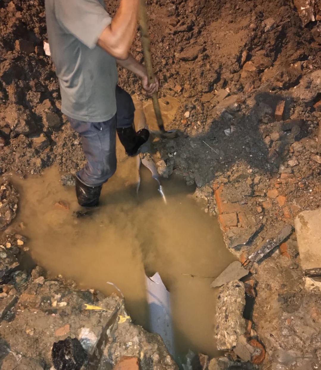 (工作人員正在維修破損水管)